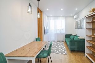 Продумaнная планировка:просторная кухня-гостинная со встроенной мебелью и техникой,просторная спальня 17м2 ,встроенная гардеробная-дополнительное место для хранения.