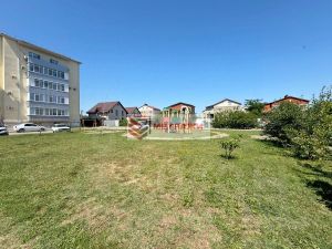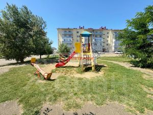 Во дворе большая открытая парковка. Большая детская-игровая площадка.