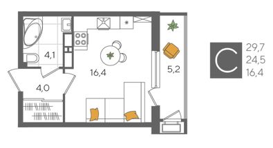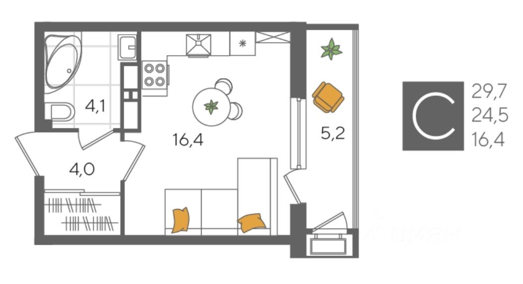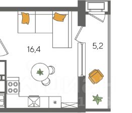 В продаже студия от застройщика! ЖК "Рекорд", г. Краснодар, Литер 1, общей площадью 29.7 кв.м., на 18 этаже.