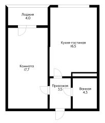 - Просторная кухня-гостиная 16.5 кв.м, уютная комната 17.7 кв.м, стильная прихожая