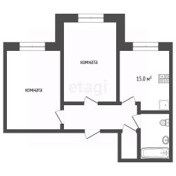 Общая площадь с лоджией - 52.45м2, жилая площадь- 26м2, кухня - 15м2, санузел совмещённый, комнаты изолированы, гардеробная.