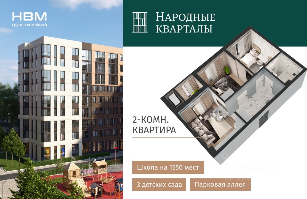 Прямая продажа от застройщика. Живите там, где удобно, где уютно и где всегда рядом все, что нужно для жизни. Выбирайте ЖР "Народные кварталы".