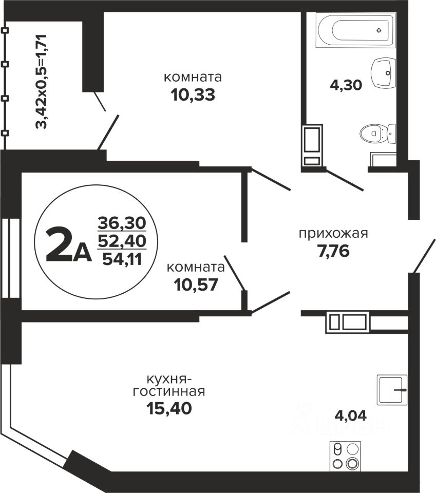 Общая площадь54,11 м²
