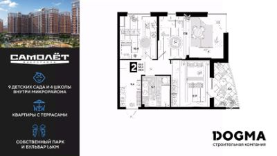 В продаже 2-комнатная квартира от застройщика! Мкр. "Самолет" 4 очередь, г. Краснодар, Литер 23 Срок сдачи: 4 кв. 2023, общей площадью 66.6 кв.м., на 3 этаже.