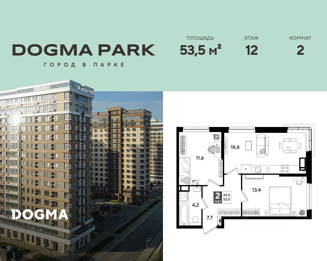 В продаже 2-комнатная квартира от застройщика! Мкр. "DOGMA PARK" г. Краснодар, Литер 20 Срок сдачи: 4 кв. 2027, общей площадью 53.5 кв.м., на 12 этаже.