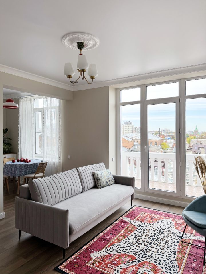 Все окна и балкон выходят на улицу Красную — красивый вид, много света и ощущение настоящего городского ритма.