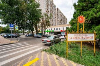 Состоящем из 4-х монолитно-кирпичных домов, многоуровневой парковки на 1600 мест, помещений коммерческого использования 3000 м2, где расположены супермаркеты, фитнес-центр и салоны красоты.
