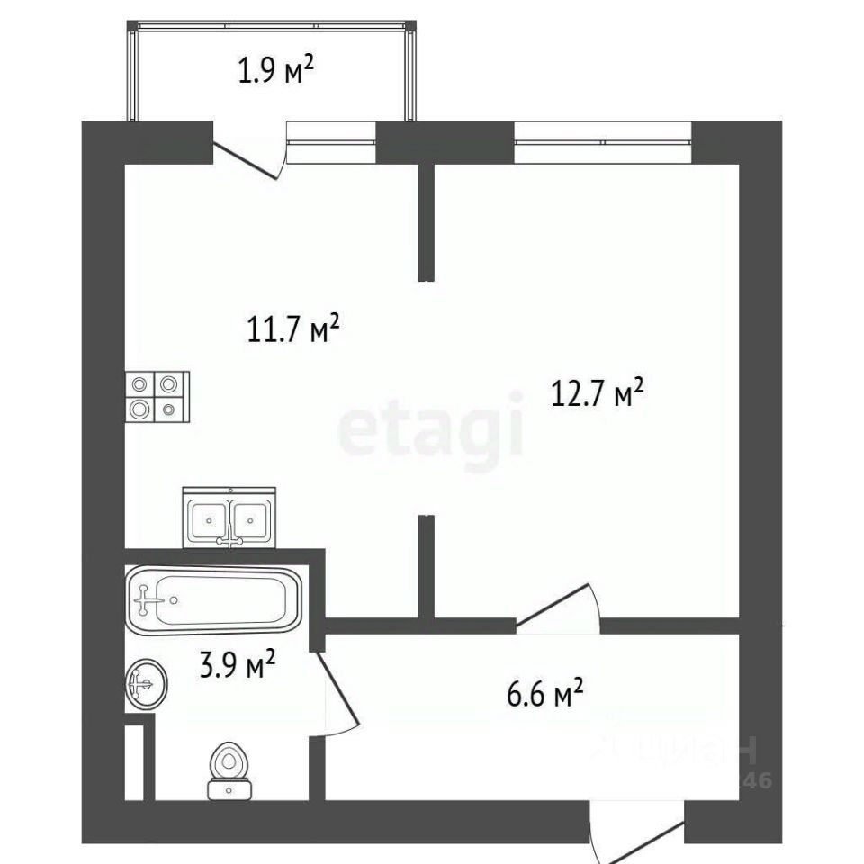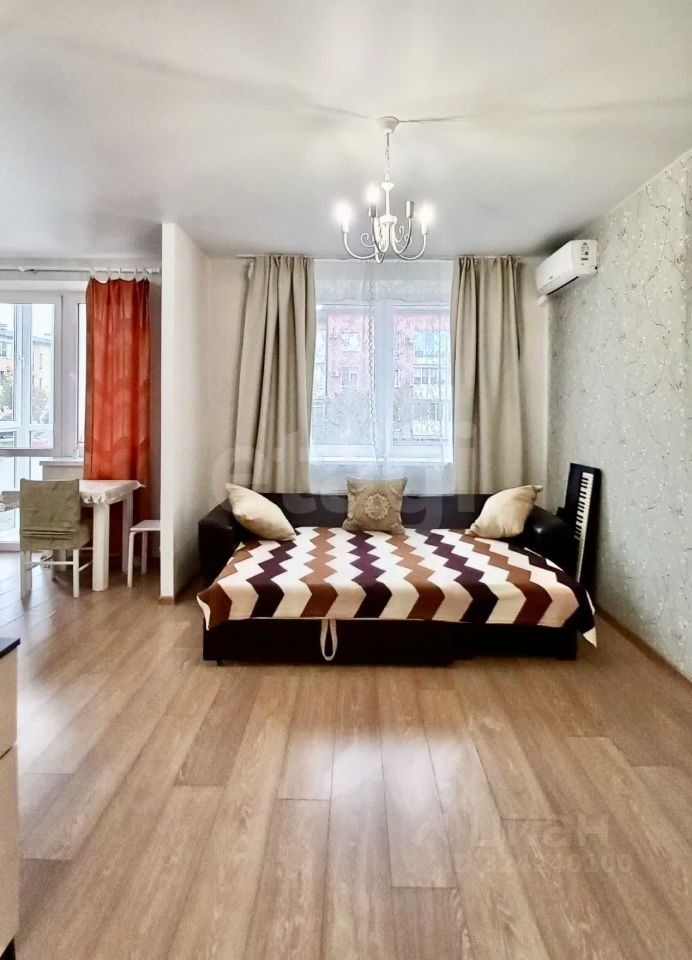 Планировка эффективно разделена на две функциональные зоны: кухню-гостинную и комнату , что формирует комфортное пространство для жизни и приема гостей.