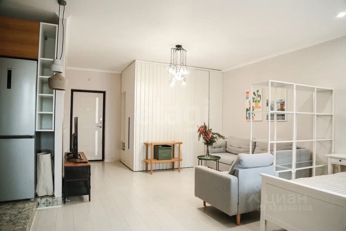 Продается светлая однокомнатная квартира-студия общей площадью