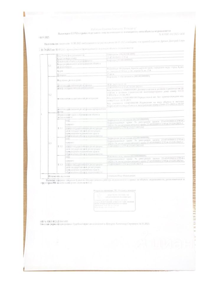 Д-к: Дремач Д.С. Квартира, площадь 25 кв.м., кадастровый номер 23:43:0106012:27854. Адрес: Краснодарский край, г.Краснодар, ул. Западный обход, д. 45, корпус 6, кв. 154. Начальная цена 2 815 200 руб., задаток 2 816 руб., шаг аукциона 28 152 руб., ув. 1493