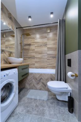 Санузел оборудован душевой колонной, имеющей несколько вариантов использования (тропический, обычный и гигиенический душ). Водонагреватель на 50л. избавит Вас от проблем отключения горячего водоснабжения.