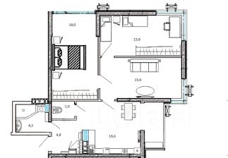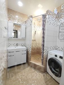 Кухня оборудована мебелью и качественной современной техникой: индукционная варочная поверхность, духовой шкаф, большая посудомоечная машина, холодильник. Раздельный санузел. В ванной комнате оборудована просторная душевая кабина, установлена стиральная машина и вся необходимая мебель.