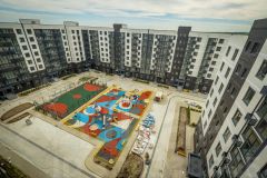 * На территории ЖК: супермаркет "Пятерочка", пункт выдачи интернет-заказов, детские и спортивные площадки. Строится детский сад (завершение в 2027 г.).
