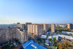 Квартира расположена на видовом этаже и имеет отдельную ленточную лоджию с панорамным остеклением, откуда открываются потрясающие виды на закаты.