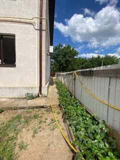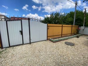 Небольшой двор с автостоянкой, беседкой, фруктовым садом и огородиком