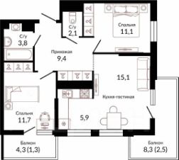 1 лоджия, 1 балкон