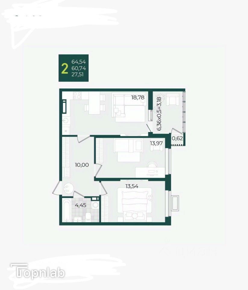 Просторная лоджия 6.36м2 станет отличным местом для отдыха, создания зимнего сада или уютного уголка для работы. Она прекрасно освещена и остеклена