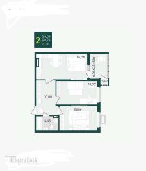 В продаже стильная 2 комнатная квартира с большой прихожей 10 м2 и кухней- гостинной 18.78 м2