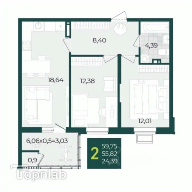 Просторная лоджия 6,06м2 станет отличным местом для отдыха, создания зимнего сада или уютного уголка для работы. Они прекрасно освещена и остеклена