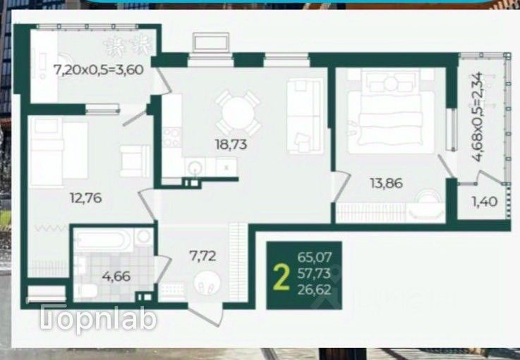 Две просторные лоджии 7,20м2 и 4,68м2 станут отличным местом для отдыха, создания зимнего сада или уютного уголка для работы. Они прекрасно освещены и остеклены