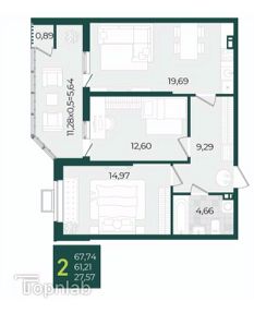 В продаже стильная 2 комнатная квартира с большой кухней-гостинной 19.69м2.