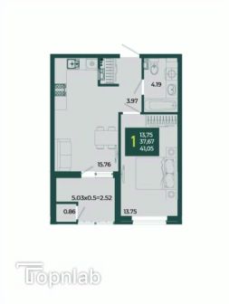 Просторная лоджия 5.03 м2 станет отличным местом для отдыха, создания зимнего сада или уютного уголка для работы. Она прекрасно освещена и остеклена