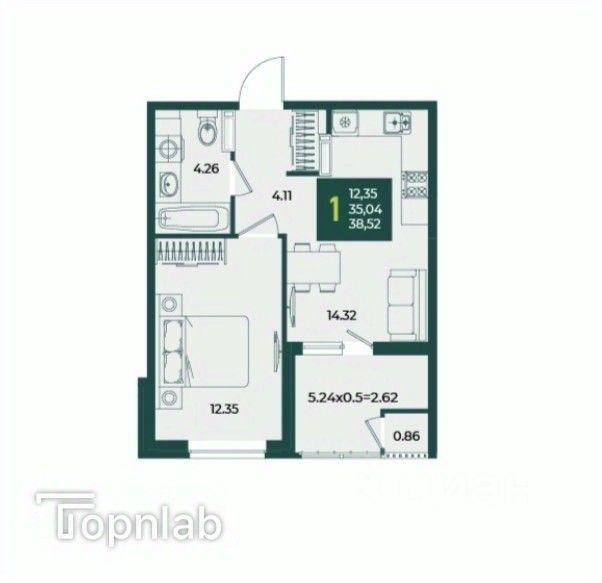 Просторная лоджия 5.24 м2 станет отличным местом для отдыха, создания зимнего сада или уютного уголка для работы. Она прекрасно освещена и остеклена