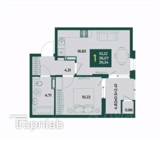 Просторная лоджия 4.82 м2 станет отличным местом для отдыха, создания зимнего сада или уютного уголка для работы. Она прекрасно освещена и остеклена