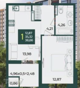Просторная лоджия 5.21м2 станет отличным местом для отдыха, создания зимнего сада или уютного уголка для работы. Она прекрасно освещена и остеклена