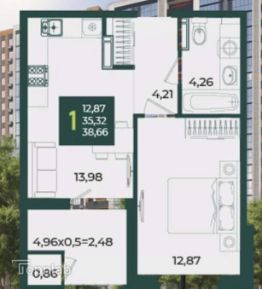 В продаже стильная 1 комнатная квартира с большой кухней 14.84м2 с выходом на лоджию 5.21 м2.