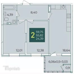 В продаже стильная 2 комнатная квартира с большой кухней 13,,44 м2 с выходом на ленточную лоджию 11,58 м2, прихожая 9,89 м2 с зоной для гардероба.