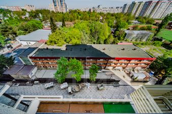 Сам комплекс: выполнен в современном стиле. Фасады из травертина-натурального камня. Необычный дизайн , красивая придомовая территория, подземный паркинг, на первом этаже кофейня "Патрик -Мари", ресторан "Мадьяр", мебельный салон, бизнес-зона.