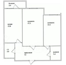 Площадь — 63м ², удачная планировка с просторной кухней и раздельными комнатами.