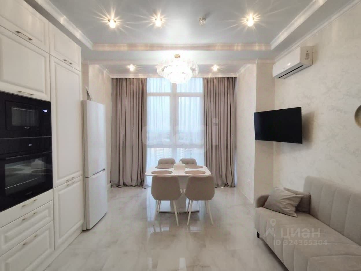 Квартира полностью готов к проживанию: выполнен качественный современный ремонт, установлена функциональная мебель и вся необходимая техника. Планировка отличается рациональным зонированием: выделена большая кухня-гостиная 17.4 кв.м, совмещенный санузел и изолированная гардеробная комната площадью 4 кв.м. На кухне установлена система фильтрации воды, а балкон полностью застеклен.