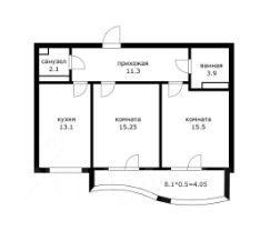 2 изолированные комнаты 15.25 и 15.5 м2, раздельный санузел 3,9 и 2,1 соответственно.