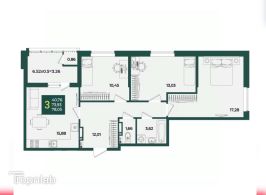 В продаже стильная 3 комнатная квартира с большой кухней 15,88м2 ,прихожая 12,01 м2 с зоной для гардероба.
