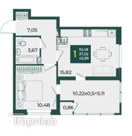 продаже стильная 1'комнатная квартира с большой лоджией площадью 10.22 м2 и кухней-гостинной 15.82 м2. Квартира отличается современным дизайном и функциональной планировкой, что делает ее идеальным вариантом для комфортной жизни.