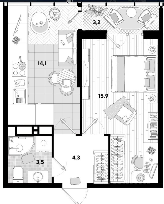 Квартира без отделки, что дает вам возможность оформить ее по своему вкусу и создать интерьер мечты. Комната просторная и светлая, есть совмещенный санузел. Наличие лоджии и балкона добавляют дополнительное пространство для отдыха и хранения.
