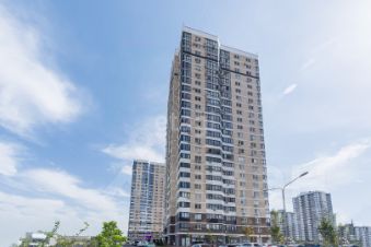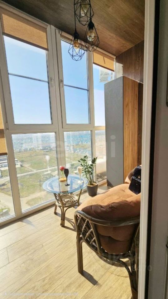 Высокий этаж гарантирует прекрасное естественное освещение и панорамные виды из окон, создающие ощущение простора.