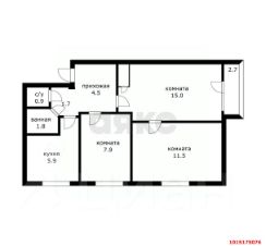 В продаже трёхкомнатная квартира площадью 53 кв. м.