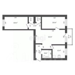Квартира расположена на две стороны дома. Общая площадь - 56,1 кв.м., жилая 39,7 кв.м., кухня 6,2 кв.м. Санузел совмещенный, имеется балкон.