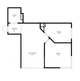 Планировка очень удобная. Кухня-гостиная 22 кв м, 2 изолированных спальни 17,5 и 11 кв м.