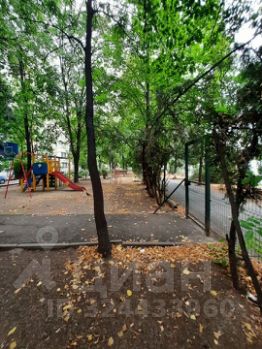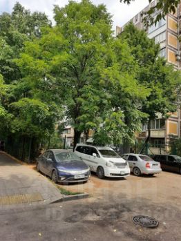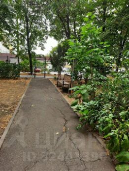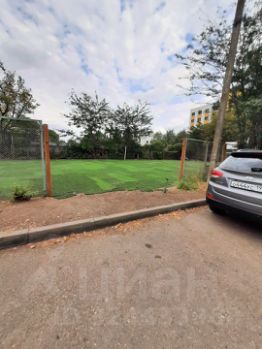 Двор дома огорожен, большая спортивная площадка, много зелени, скамейки. Парковка во дворе за шлагбаумом.
