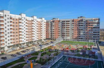 Жилой комплекс со своей придомовой территорией: детская площадка находится на стилобате, там же зона отдыха, мангалы, беседки, футбольное поле, волейбольное поле ,на нижнем уровне стилобата находится парковка.