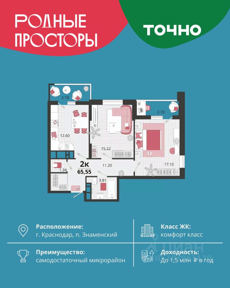"Родные просторы"- самодостаточный микрорайон, который реализован по принципу комплексного развития территории, где есть вся инфраструктура для комфортной жизни. На территории 41 га 29 домов от 9 до 24 этажей, уютные дворы со спортивными и игровыми площадками, социальные и коммерческие объекты, зеленые массивы и фонтаны. Главная точка притяжения "Родных просторов" - парк семейного отдыха площадью 9 га, 4,5 км прогулочных аллей, амфитеатр для мероприятий, кинофестивальная площадка. Особая гордость микрорайона современная школа на 1550 мест и 3 детских сада "Ладушки", "Веснушки" и "Топотушки" на 880 малышей. В центре микрорайона строятся фитнес-клуб BALANCE с акватермальным комплексом и собственная поликлиника, площадью более 5000 кв.м. Уже открыт православный храм Святых Первоверховных апостолов Петра и Павла.