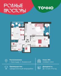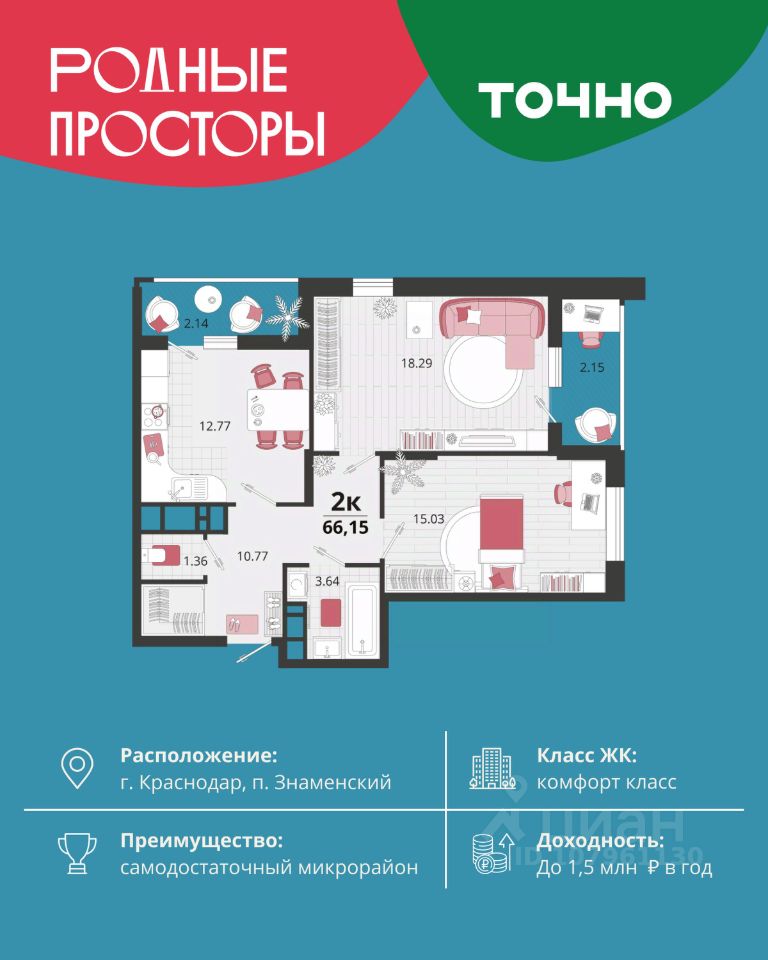 "Родные просторы"- самодостаточный микрорайон, который реализован по принципу комплексного развития территории, где есть вся инфраструктура для комфортной жизни. На территории 41 га 29 домов от 9 до 24 этажей, уютные дворы со спортивными и игровыми площадками, социальные и коммерческие объекты, зеленые массивы и фонтаны. Главная точка притяжения "Родных просторов" - парк семейного отдыха площадью 9 га, 4,5 км прогулочных аллей, амфитеатр для мероприятий, кинофестивальная площадка. Особая гордость микрорайона современная школа на 1550 мест и 3 детских сада "Ладушки", "Веснушки" и "Топотушки" на 880 малышей. В центре микрорайона строятся фитнес-клуб BALANCE с акватермальным комплексом и собственная поликлиника, площадью более 5000 кв.м. Уже открыт православный храм Святых Первоверховных апостолов Петра и Павла.