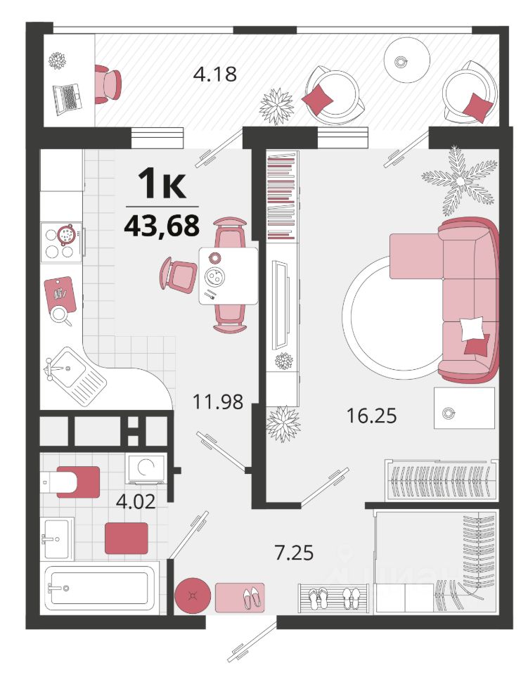 Общая площадь43,55 м²