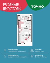 "Родные просторы"- самодостаточный микрорайон, который реализован по принципу комплексного развития территории, где есть вся инфраструктура для комфортной жизни. На территории 41 га 29 домов от 9 до 24 этажей, уютные дворы со спортивными и игровыми площадками, социальные и коммерческие объекты, зеленые массивы и фонтаны. Главная точка притяжения "Родных просторов" - парк семейного отдыха площадью 9 га, 4,5 км прогулочных аллей, амфитеатр для мероприятий, кинофестивальная площадка. Особая гордость микрорайона современная школа на 1550 мест и 3 детских сада "Ладушки", "Веснушки" и "Топотушки" на 880 малышей. В центре микрорайона строятся фитнес-клуб BALANCE с акватермальным комплексом и собственная поликлиника, площадью более 5000 кв.м. Уже открыт православный храм Святых Первоверховных апостолов Петра и Павла.