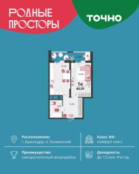 "Родные просторы"- самодостаточный микрорайон, который реализован по принципу комплексного развития территории, где есть вся инфраструктура для комфортной жизни. На территории 41 га 29 домов от 9 до 24 этажей, уютные дворы со спортивными и игровыми площадками, социальные и коммерческие объекты, зеленые массивы и фонтаны. Главная точка притяжения "Родных просторов" - парк семейного отдыха площадью 9 га, 4,5 км прогулочных аллей, амфитеатр для мероприятий, кинофестивальная площадка. Особая гордость микрорайона современная школа на 1550 мест и 3 детских сада "Ладушки", "Веснушки" и "Топотушки" на 880 малышей. В центре микрорайона строятся фитнес-клуб BALANCE с акватермальным комплексом и собственная поликлиника, площадью более 5000 кв.м. Уже открыт православный храм Святых Первоверховных апостолов Петра и Павла.