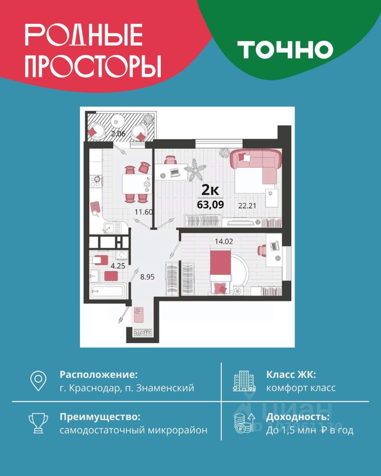 "Родные просторы"- самодостаточный микрорайон, который реализован по принципу комплексного развития территории, где есть вся инфраструктура для комфортной жизни. На территории 41 га 29 домов от 9 до 24 этажей, уютные дворы со спортивными и игровыми площадками, социальные и коммерческие объекты, зеленые массивы и фонтаны. Главная точка притяжения "Родных просторов" - парк семейного отдыха площадью 9 га, 4,5 км прогулочных аллей, амфитеатр для мероприятий, кинофестивальная площадка. Особая гордость микрорайона современная школа на 1550 мест и 3 детских сада "Ладушки", "Веснушки" и "Топотушки" на 880 малышей. В центре микрорайона строятся фитнес-клуб BALANCE с акватермальным комплексом и собственная поликлиника, площадью более 5000 кв.м. Уже открыт православный храм Святых Первоверховных апостолов Петра и Павла.